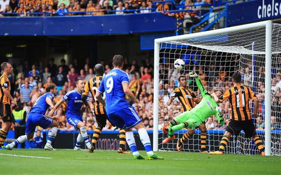 تشيلسي دخل في صلب الموضوع مباشرةً بضغط مكثف، أسفر عن حصوله على ركلة جزاء بعد دخول متهور لحارس مرمى هال سيتي الجديد آلان ماكريجور على  فرناندو توريس، إلا أن الحارس القادم من بيشكتاش صحح خطأه عندما تصدى للركلة التي نفذها المتخصص فرانك لامبارد، وهي الضربة الثانية التي يُهدرها لامبارد من آخر 3 ضربات جزاء سددها.